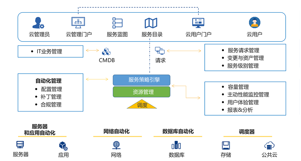 统一编排多厂商的异构云服务和技术产品和服务,构建涵盖覆盖IaaS、PaaS、DaaS的云服务治理体系